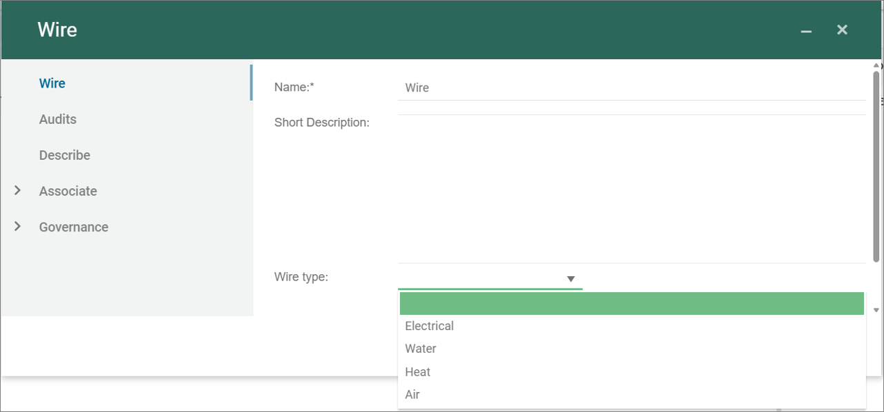 The Wire can be used to model connetions between components. It is possible to select between different types of wire, e.g. Electrical, Water, Heat or Air.