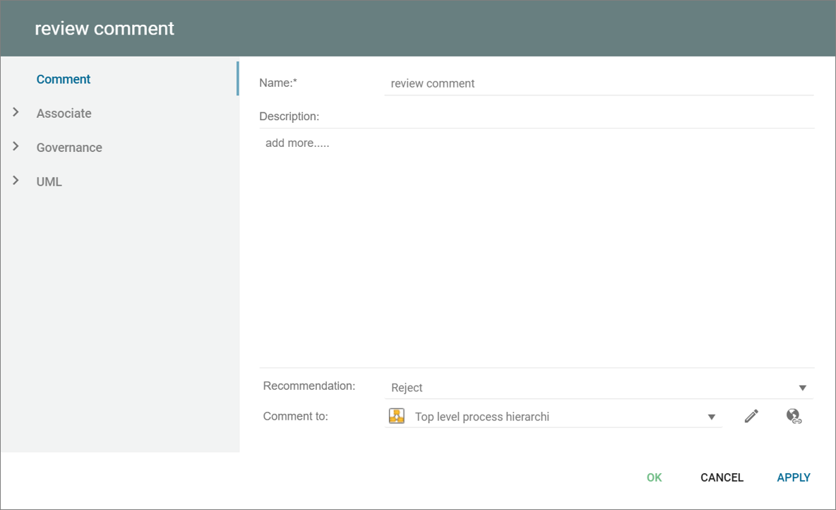 This template is used to capture and describe comments to other objects.