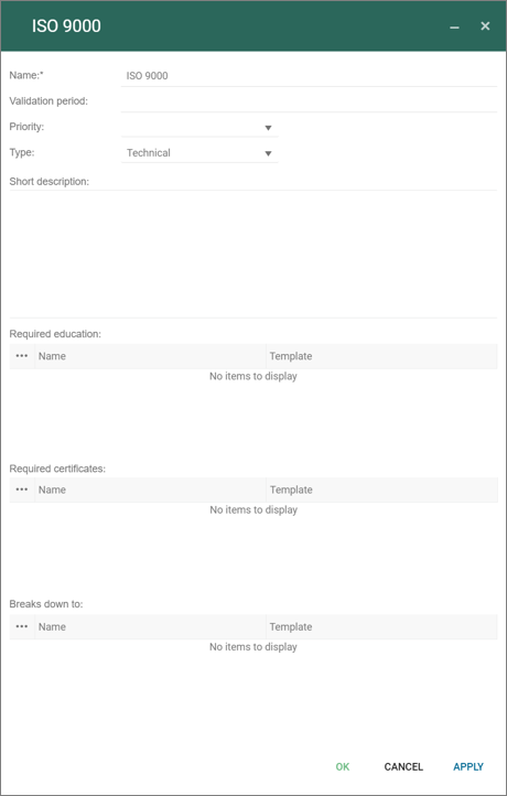 A competence can be detailed in competence levels, and is part of the standard person management governance workflow.
