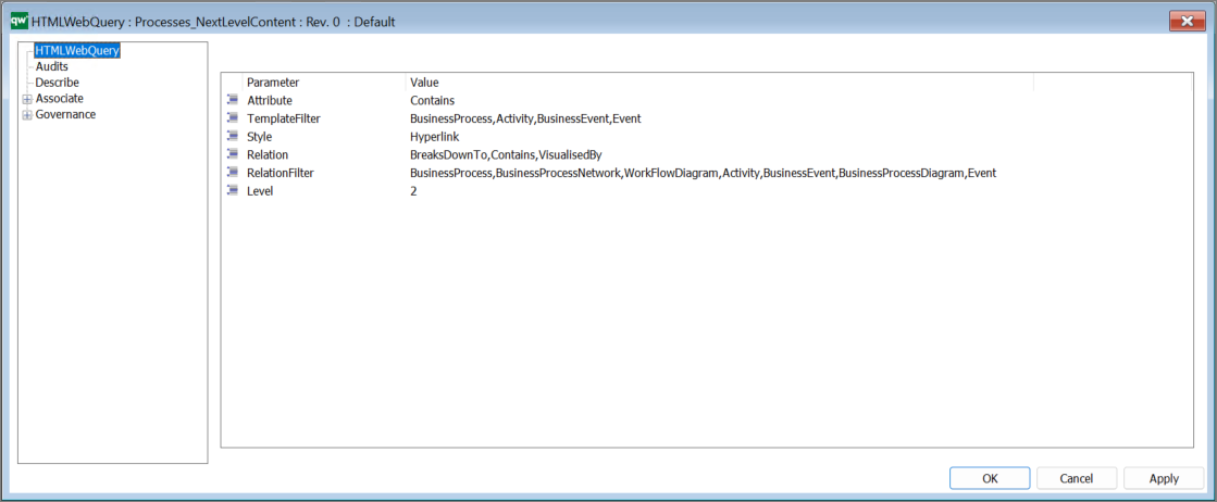 RelationFilter: These are the templates that will be investigated when processing the relations in the query. Other templates in the relation will be ignored.